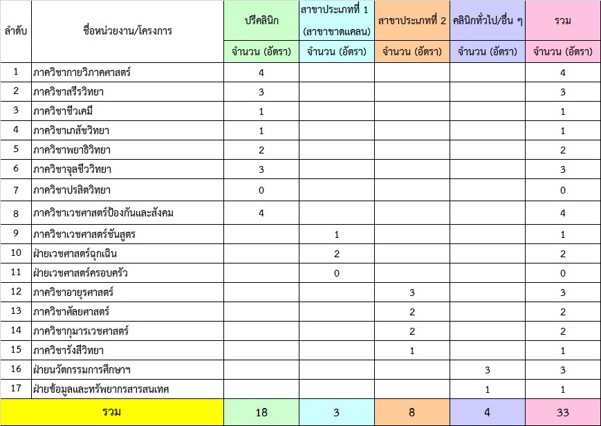 อัตราที่ได้รับอนุมัติจัดสรรแพทย์ผู้ทำสัญญา ฯ ปีการศึกษา 2568 (ปีงบประมาณ 2569)